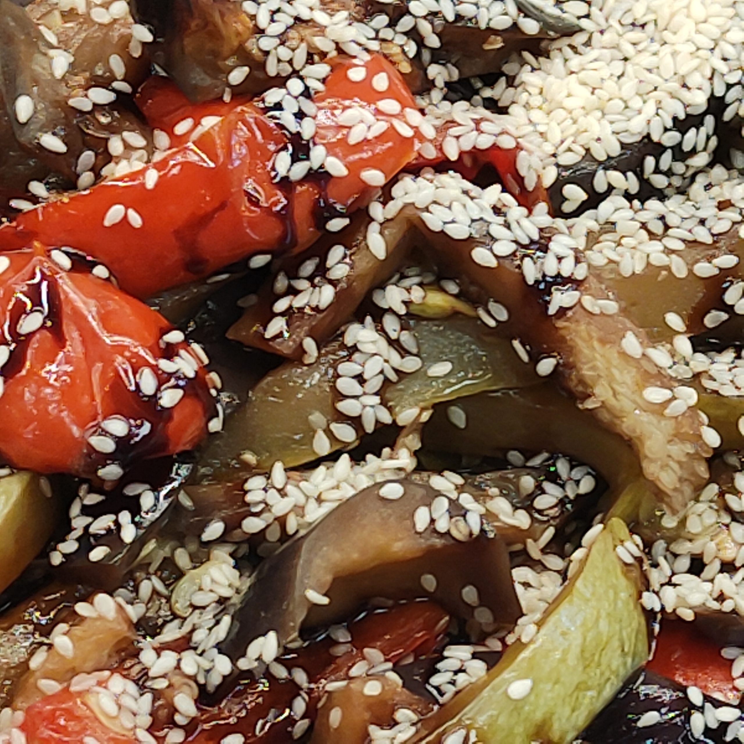 Состав: баклажан, кабачок, перец болгарский, соус “Терияки”