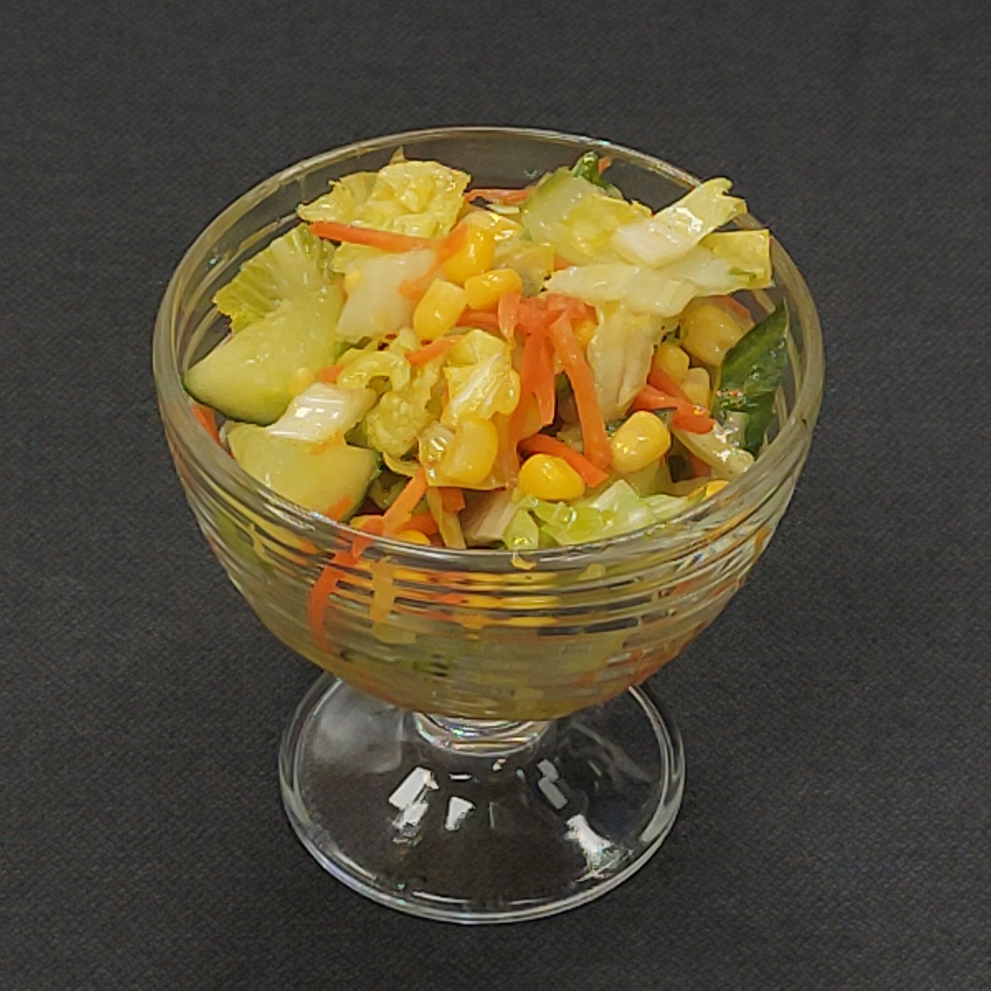 Состав: огурец, капуста пекинская, кукуруза, морковь, зелень, масло растительное