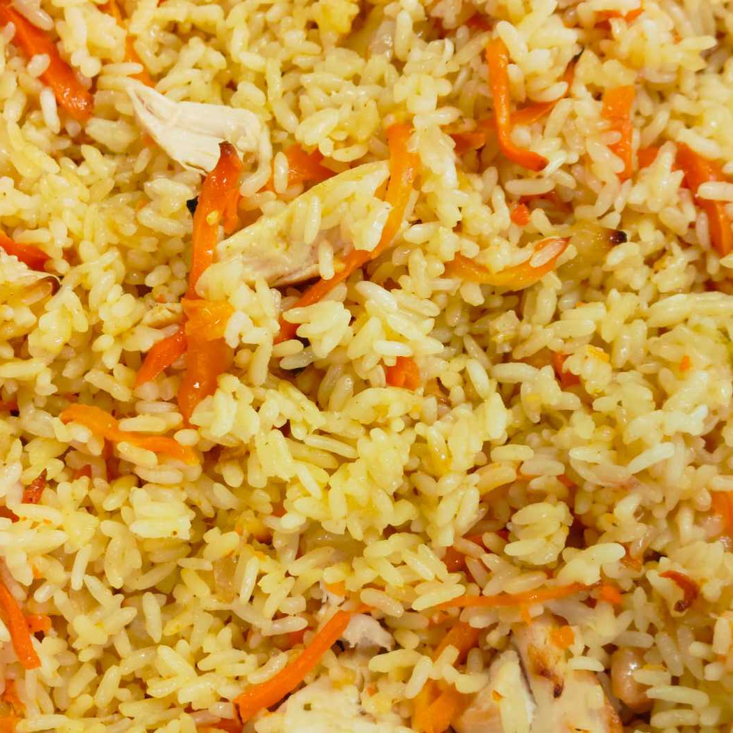 Состав: рис, бедро куриное, морковь, лук репчатый, специи