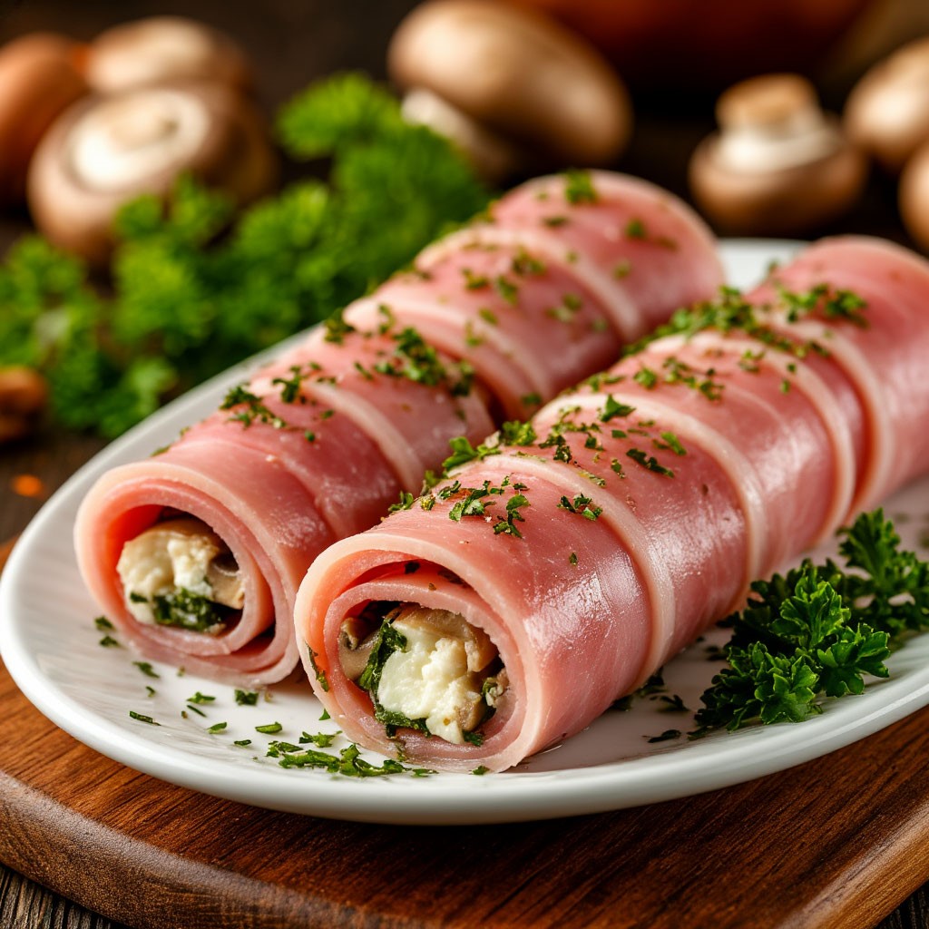 РУЛЕТИКИ ВЕТЧИННЫЕ С СЫРОМ И ГРИБАМИ