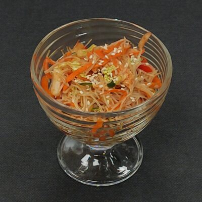 Состав: колбаса, капуста пекинская, огурец, помидор, кукуруза консервированная, сыр, майонез