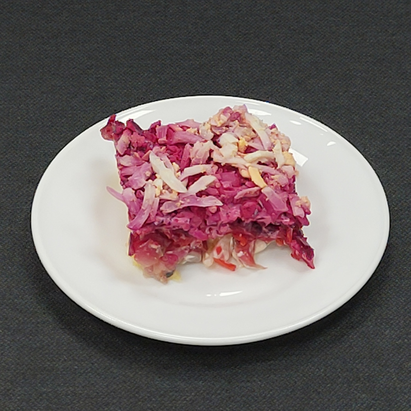 Состав: картофель, свекла, морковь, сельдь, лук репчатый, яйцо, майонез