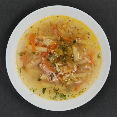 Состав: курица копчёная, картофель, сыр, сыр плавленый, сливки 20%, бульон куриный