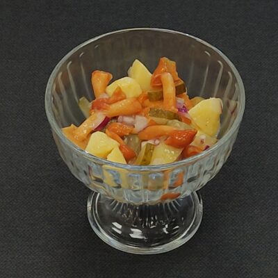 Состав: картофель, свекла, морковь, огурец солёный, сельдь, масло растительное