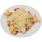 Салат айсберг, капуста пекинская, филе курицы(грудка), черри, сыр пармезан, гренки, соус «Цезарь»