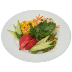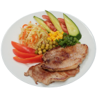 Карбонад свиной, капуста, огурец, помидор, кукуруза, горошек зеленый, специи