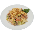 Капуста пекинская, салат айсберг, язык свиной, курица, огурец маринованный, морковь по-корейски, картофель пай , майонез, сметана, чеснок