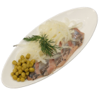 Сельдь, лук репчатый, горошек зеленый