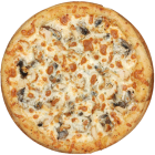Фирменный белый соус, сыр моцарелла, бекон, сыр пармезан